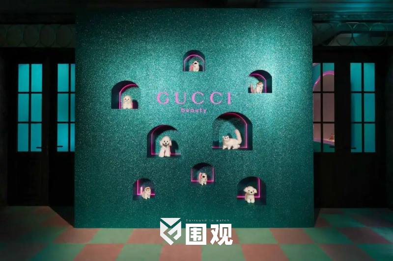琳琅满目的古驰彩妆系列梳妆台在绮梦美妆舞池展现,粉色天地激发无尽的少女心。