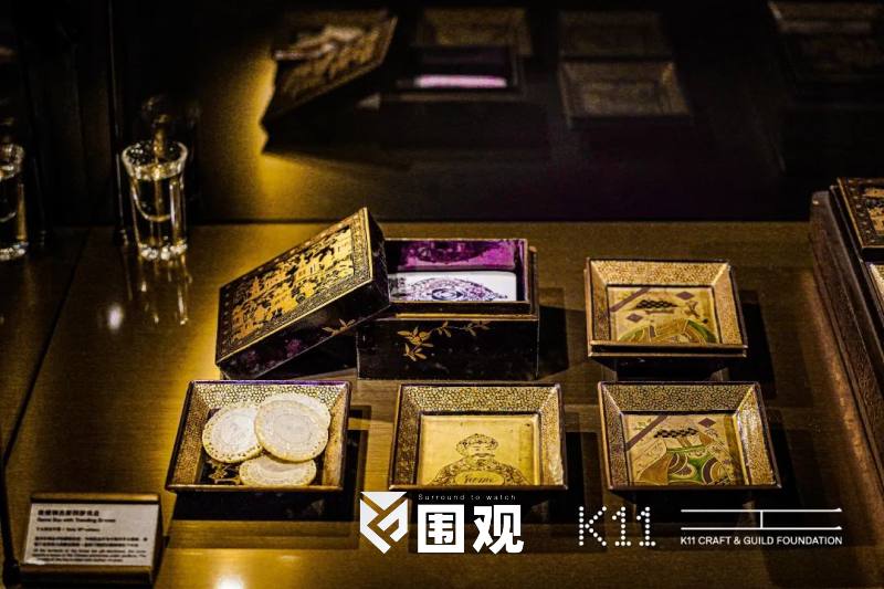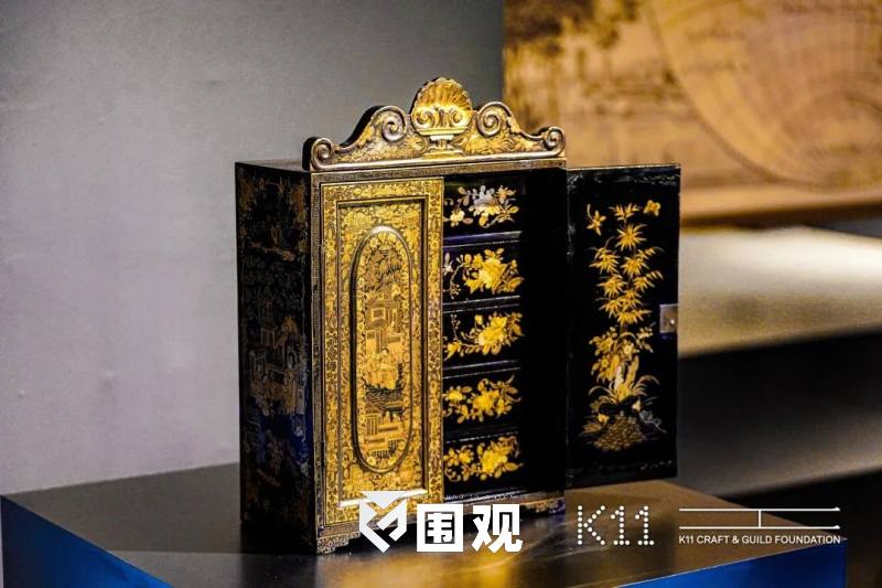 步入“盛世工艺”,KCG收藏的黑漆描金古董珍品错落有致陈列,藏品时间跨度超百年,凝聚东西方工艺精华,以“黑漆描金”工艺技法的流丽高逸直击观者心灵。