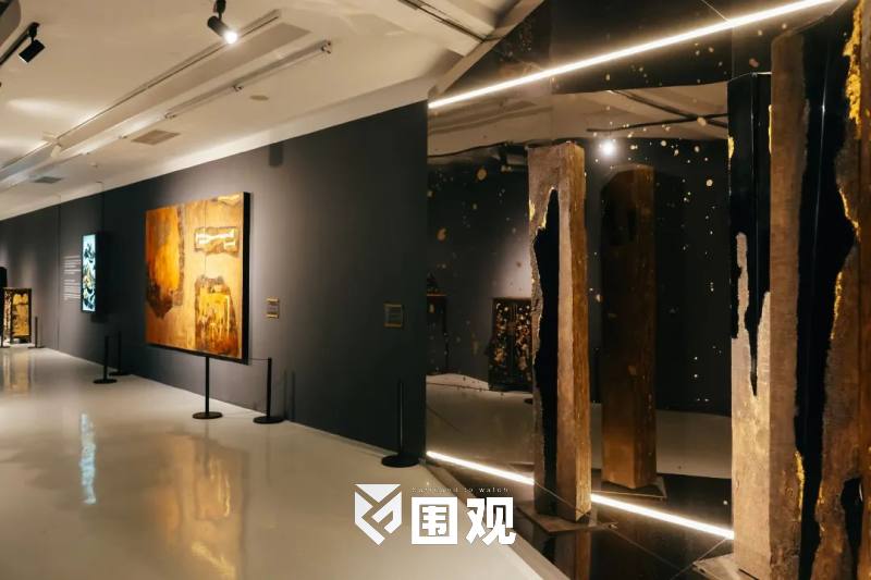 跨越至“方寸之外”,传统中国工艺在当代艺术中延伸。中国艺术家翁纪军创作的由三根脱胎立柱组成的装置《矗 2018》,法国艺术家文森·漆的三联幅《无题》(2013),以及法国艺术先锋组合Obvious Art带来的数字艺术藏品组合,映现出“黑漆描金”工艺在现代发展的可能性以及新一代匠人对于传统工艺的热爱、应用与复兴。