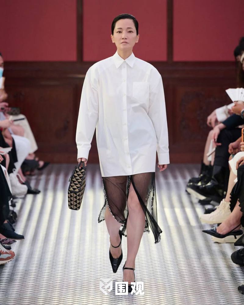 Prada invited nine renowned Chinese actors to join the show, including Prada Ambassadors Chun Xia, Li Yifeng alongside Bai Yufan, Guo Keyu, Huang Jue, Huang Miyi, Kara Wai, Liao Fan and Rayza. Supermodels Du Juan, Jin Dachuan, Ju Xiaowen, Cici Xiang and Zhao Lei also made special appearances to the show.